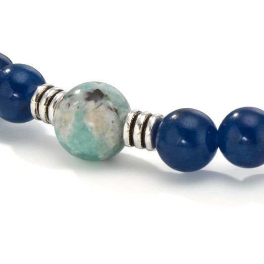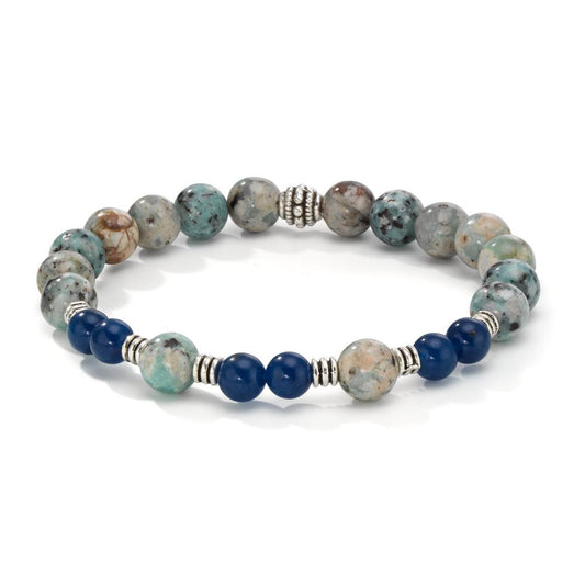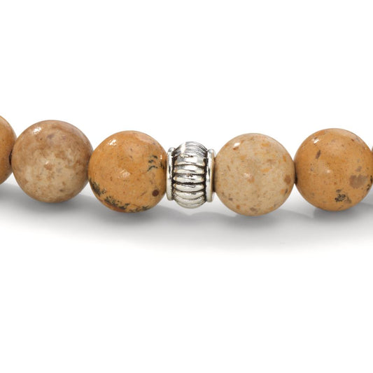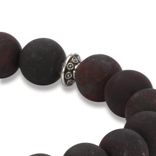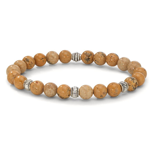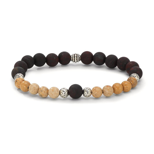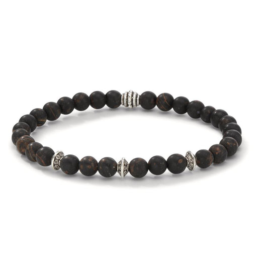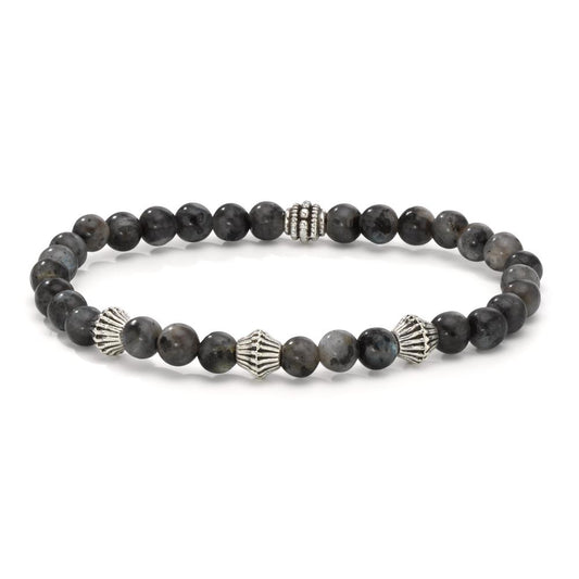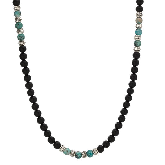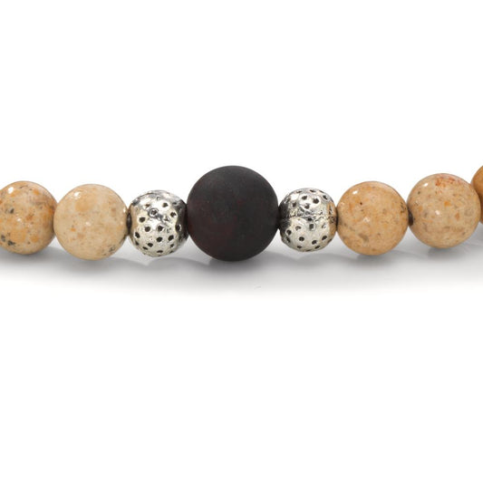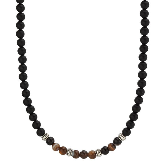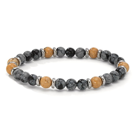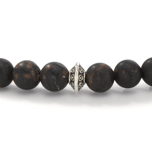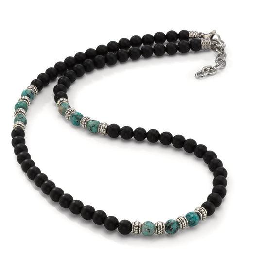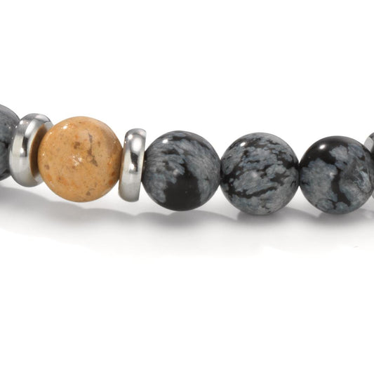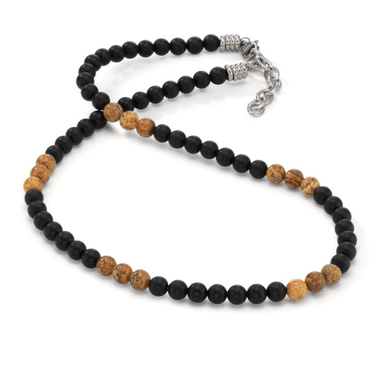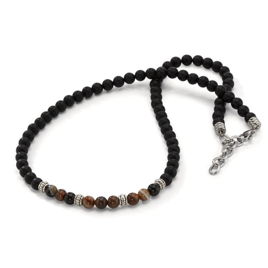 Pulsera Acero inoxidable, Cuero Ágata negro 21-22 cm