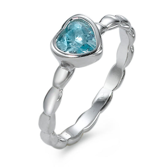 Anillo de dedo Plata Circonita azul Rodio plateado Corazón