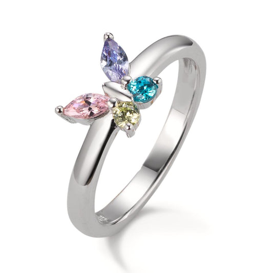Anillo de dedo Plata Circonita 4 piedras Rodio plateado Mariposa