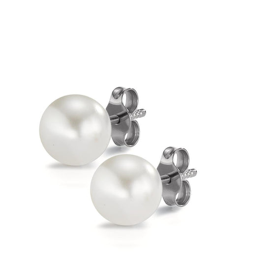 Pendientes Titanio [shining Pearls] blanco, 2 Perlas, 8 mm