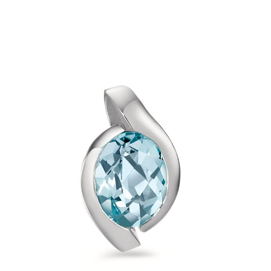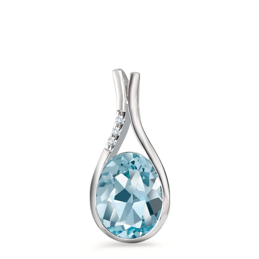 Colgante 750/oro blanco de 18 quilates Topacio azul, [oval], Diamante blanco, 0.015 ct, 3 piedras, [Brillant], w-si