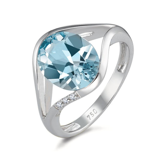 Anillo de dedo 750/oro blanco de 18 quilates Topacio azul, 2.85 ct, Diamante 0.015 ct, 3 piedras, [Brillant], w-si