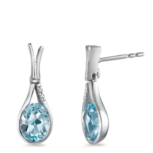 Pendientes 750/oro blanco de 18 quilates Topacio azul, 2 piedras, [oval], Diamante blanco, 0.016 ct, 2 piedras, [Brillant], w-si