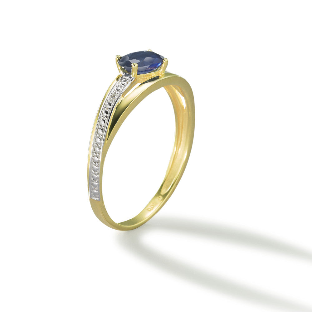 Elegante anillo de mujer en oro amarillo 750, adornado con un zafiro oval intenso y diamantes brillantes. Diseño sofisticado que aporta un toque de lujo y color, ideal para ocasiones especiales o para realzar tu estilo diario. Calidad y elegancia en una pieza única.