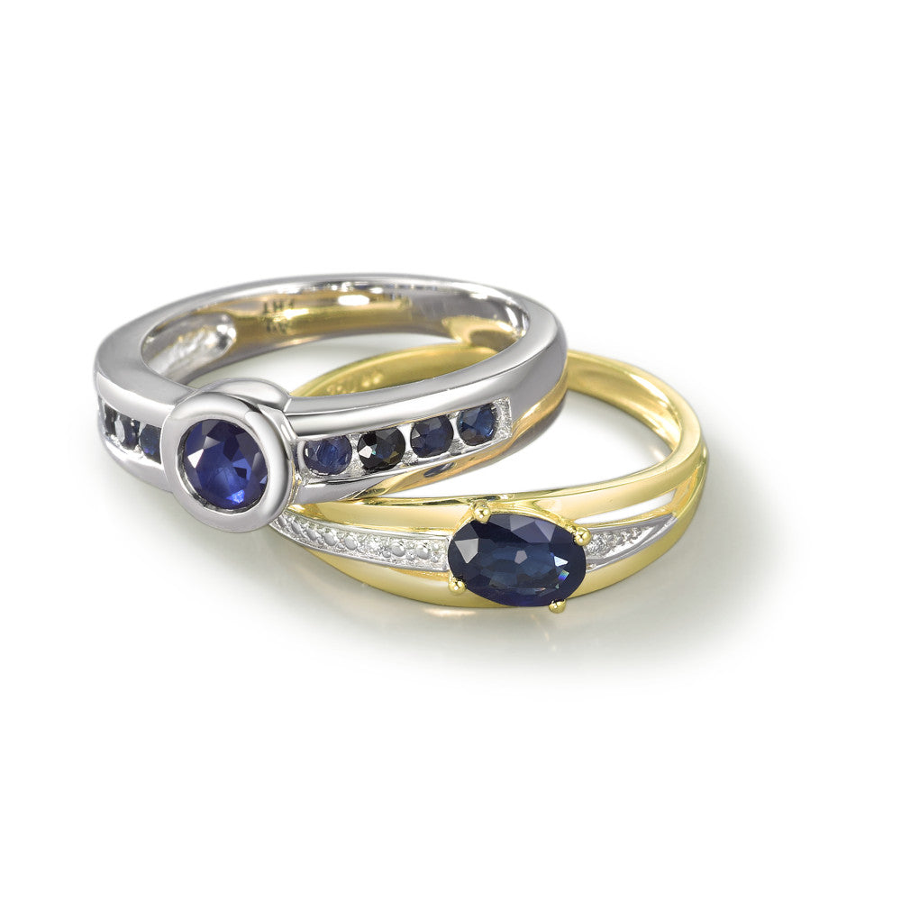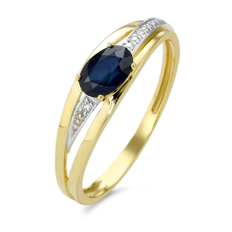 Anillo de dedo 750/oro amarillo de 18 quilates Zafiro azul, [oval], Diamante blanco, 0.01 ct