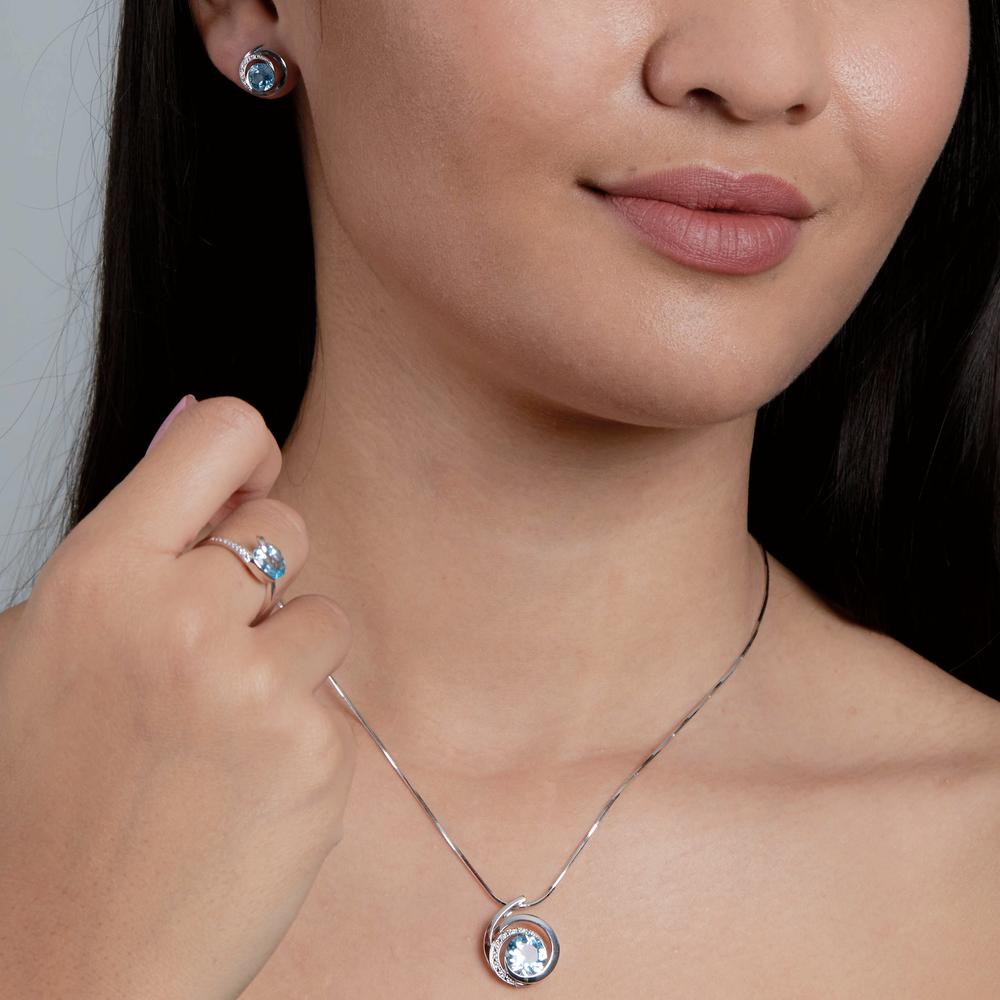 Anillo de mujer elaborado en oro blanco 750, con un elegante topacio azul en forma ovalada y delicados diamantes que aportan brillo y sofisticación. Diseño moderno y femenino, ideal para complementar tu estilo con un toque de lujo y distinción.
