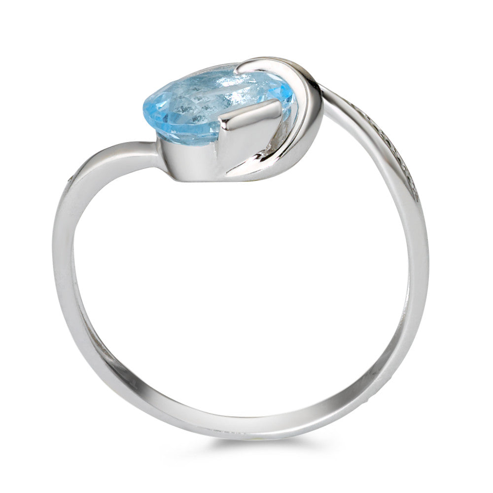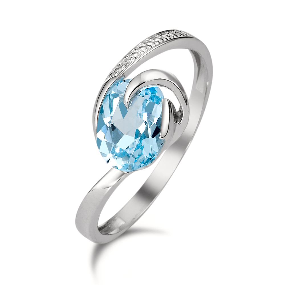 Anillo de dedo 750/oro blanco de 18 quilates Topacio azul, [oval], Diamante blanco, 0.005 ct, w-si