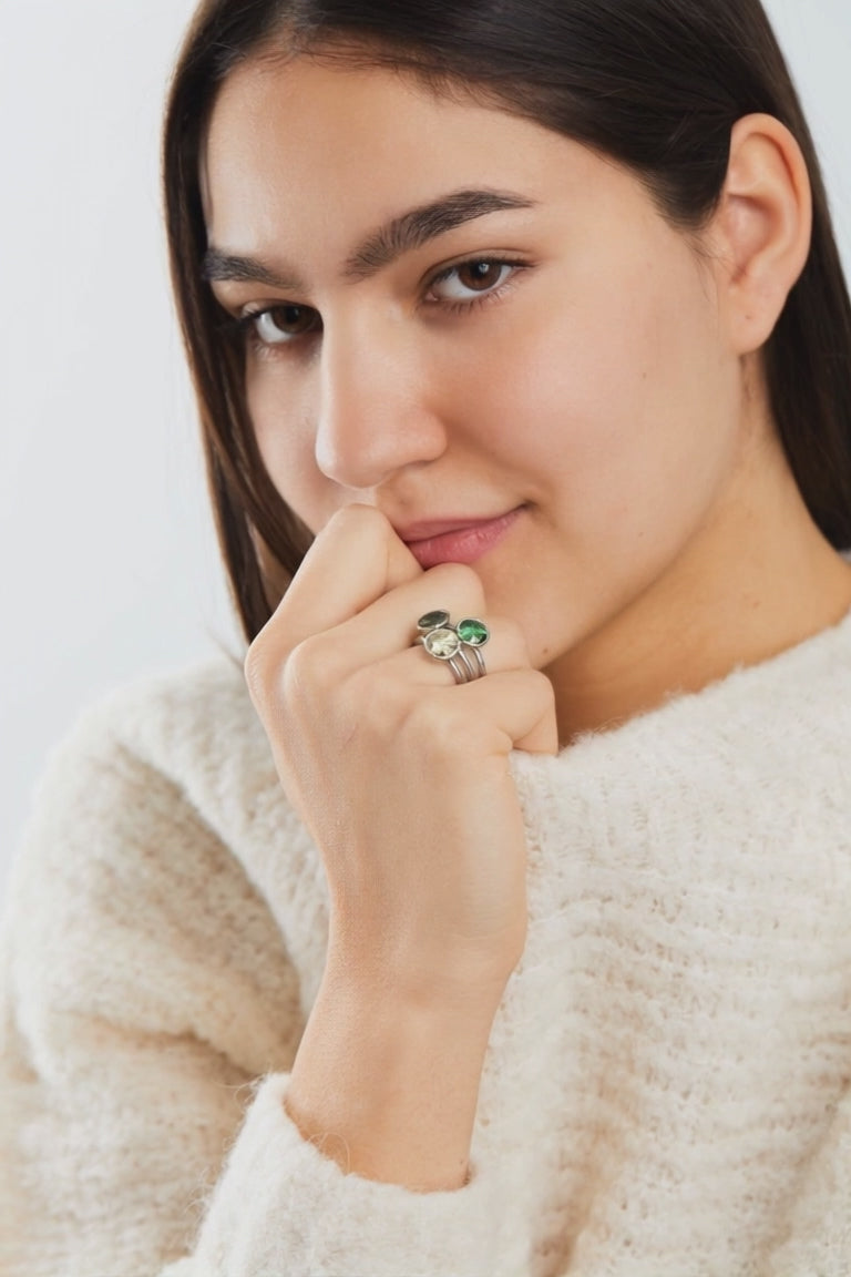 Anillo de acero inoxidable para mujer con diseño elegante y moderno. Destaca por su zirconia verde que aporta un brillo especial y sofisticado. Perfecto para complementar cualquier look con un toque de color y estilo duradero. Ideal para uso diario o ocasiones especiales.