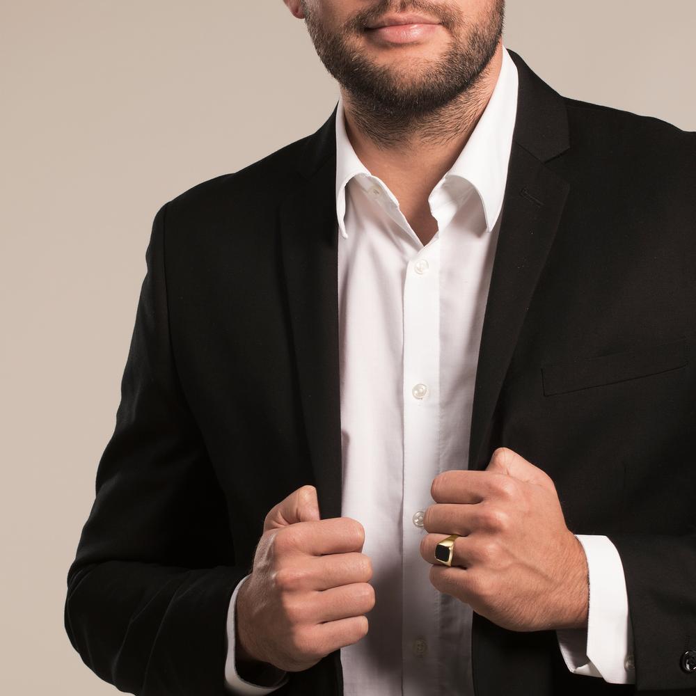 Anillo de hombre elegante en oro amarillo 375, con un diseño clásico y un ónix negro pulido que aporta sofisticación y estilo. Perfecto para realzar cualquier look con un toque de distinción y masculinidad. Calidad y diseño atemporal en una pieza exclusiva.