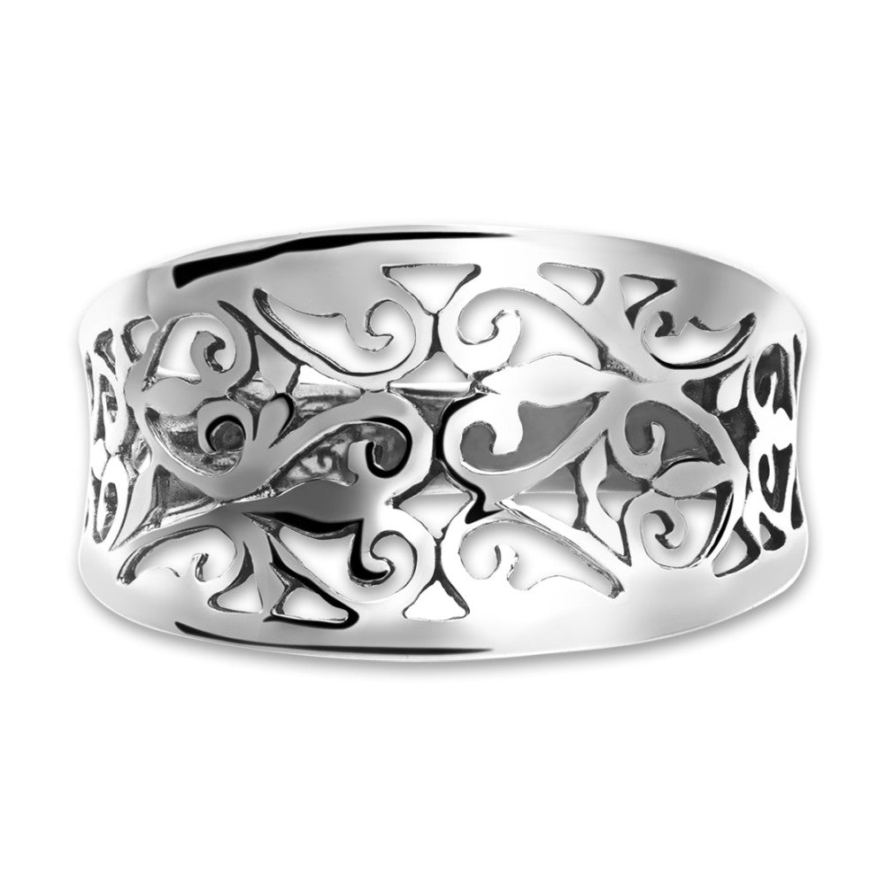Anillo de plata para mujer con diseño calado elegante. Su estilo detallado y sofisticado lo convierte en el complemento perfecto para cualquier ocasión, aportando un toque de delicadeza y distinción a tu look diario. Material de alta calidad, cómodo y duradero.