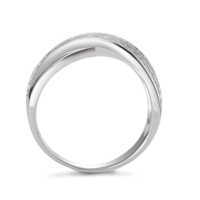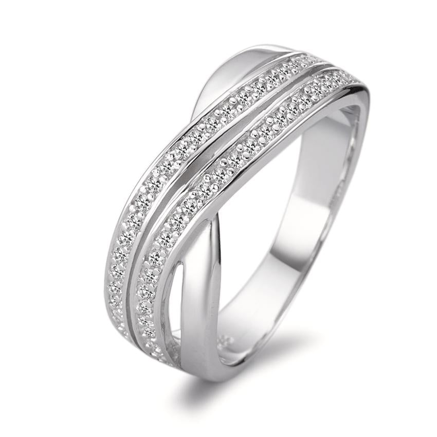 Anillo para mujer en plata de ley con un diseño moderno y elegante. Decorado con numerosas circonitas brillantes que aportan un toque sofisticado y luminoso. Perfecto para complementar cualquier look, desde casual hasta formal, resaltando la belleza femenina con estilo y delicadeza.