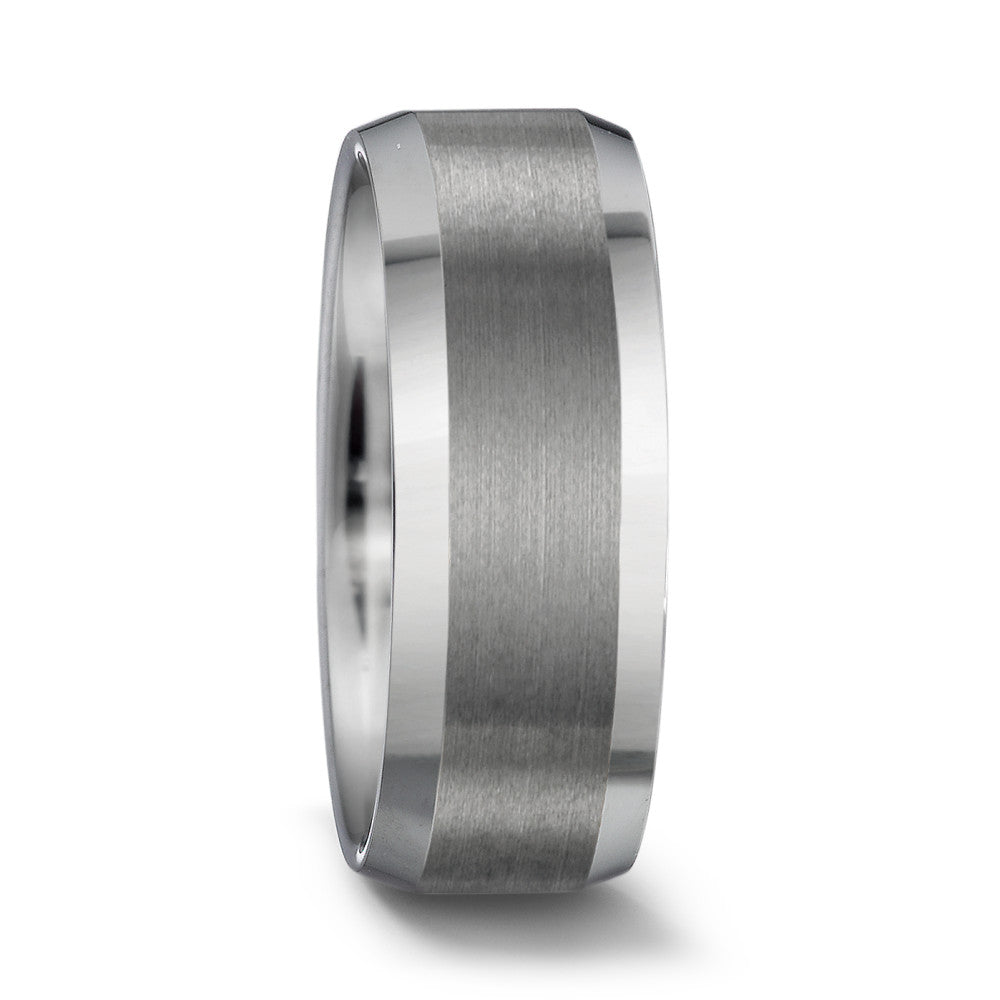 Anillo de tungsteno con acabado mate y bordes pulidos, diseño moderno y resistente. Ideal para uso diario, combina durabilidad con estilo elegante. Perfecto para quienes buscan un accesorio robusto y sofisticado. Disponible en varias tallas para un ajuste cómodo.
