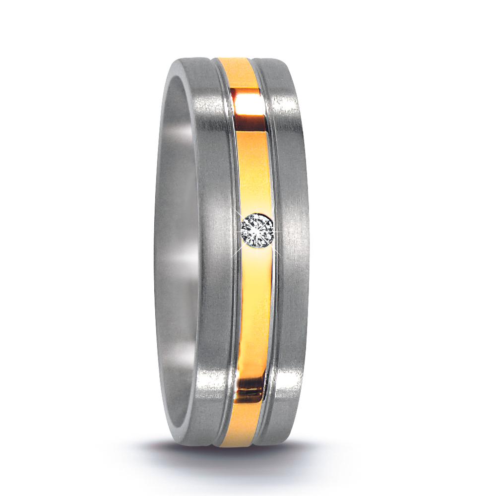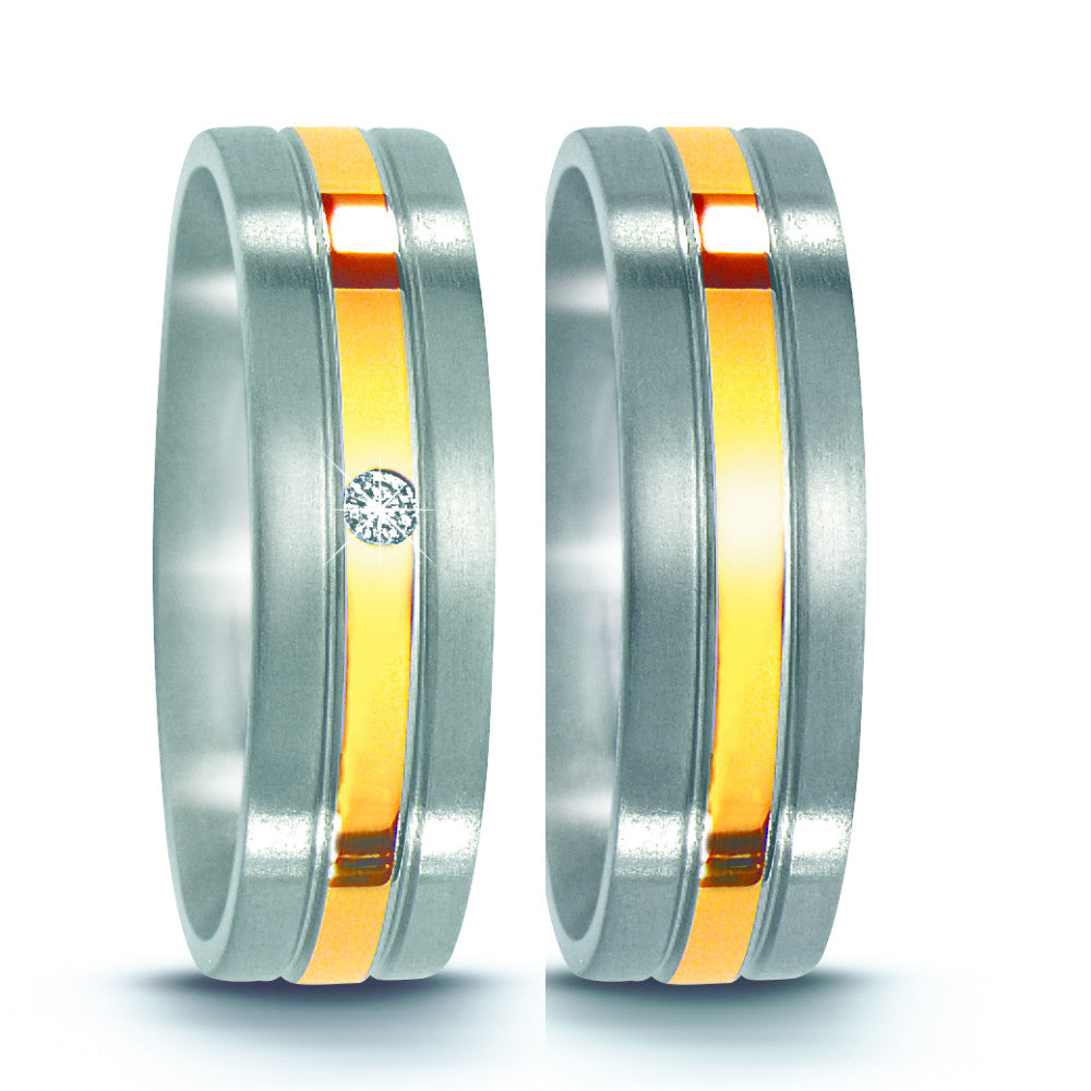 Anillo de pareja Acero inoxidable, 750/oro amarillo de 18 quilates Diamante 0.02 ct, w-si