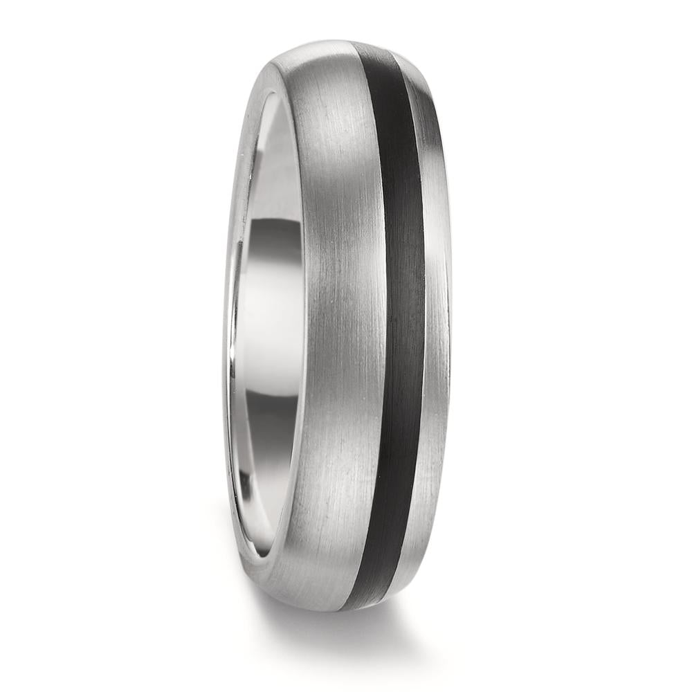 Anillo de pareja de acero inoxidable con incrustación de cerámica negra. Diseño moderno y elegante, ideal para simbolizar compromiso y unión. Resistente, cómodo y perfecto para uso diario. Un símbolo duradero de amor y conexión.
