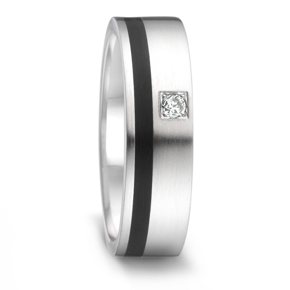 Anillo de pareja Acero inoxidable, Cerámica Diamante 0.04 ct, tw-si