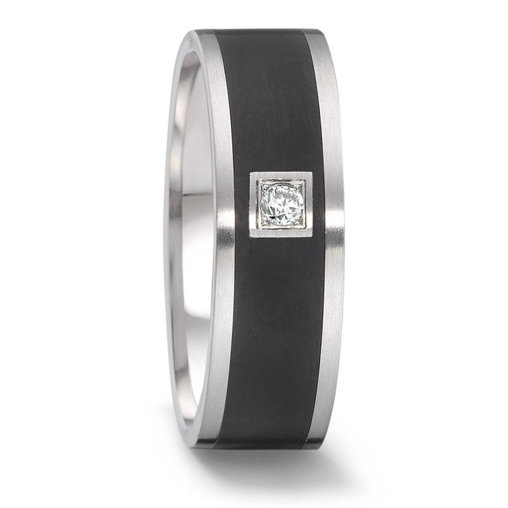 Anillo de pareja Acero inoxidable, Cerámica Diamante 0.04 ct, tw-si