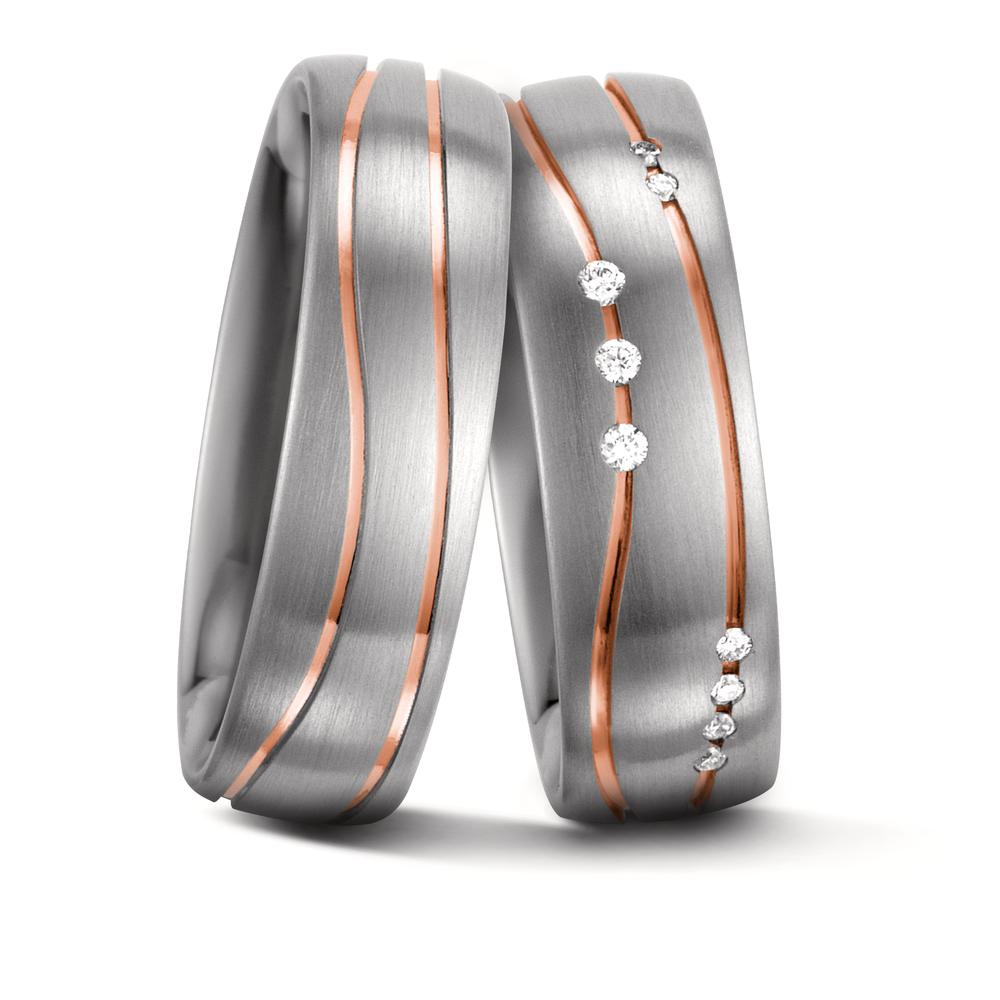 Anillo de pareja Oro blanco de 585/14 kt., Oro rojo de 585/14 kt. Diamante blanco, 0.06 ct, 9 piedras, w-si