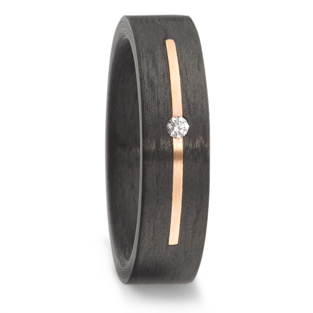 Anillo de pareja para mujer fabricado en oro rosa 585, con diseño único que combina carbono negro estilizado y una fina línea de oro rosa. Decorado con un diamante brillante para un toque de elegancia y sofisticación. Ideal para simbolizar amor y compromiso.