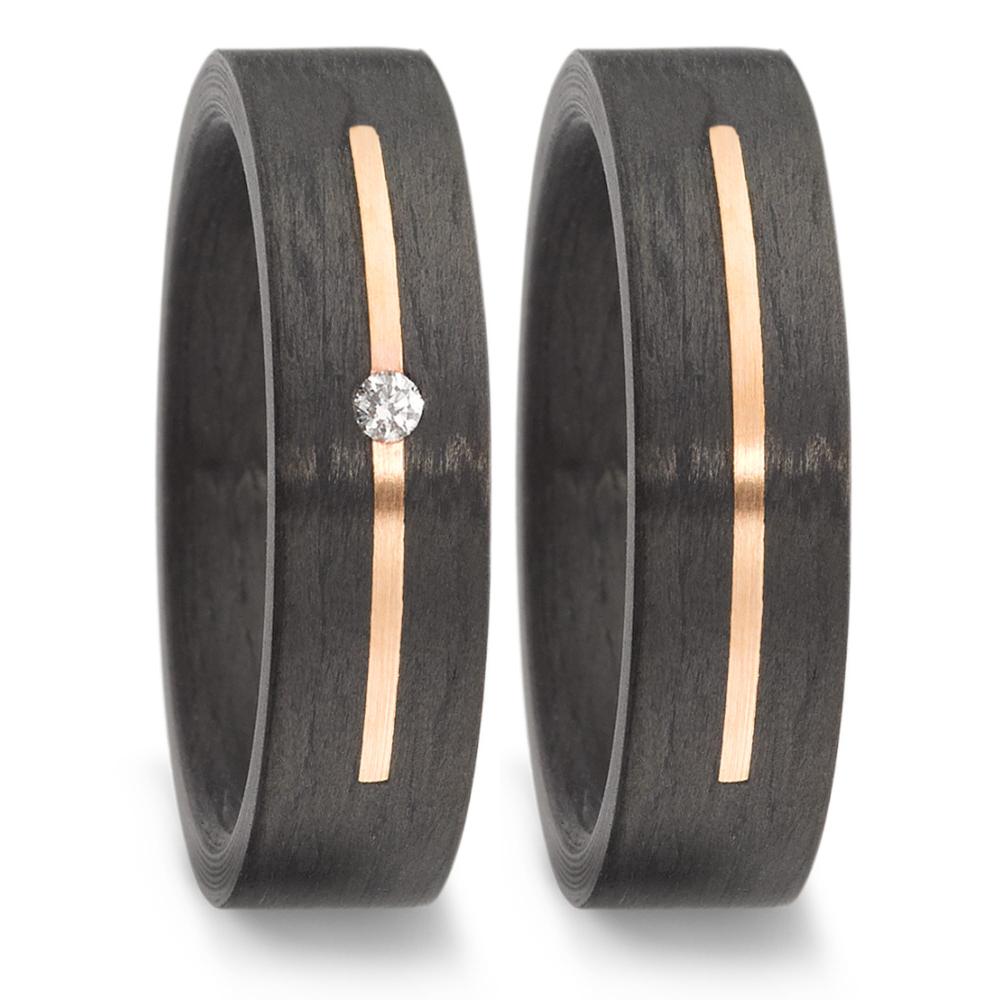 Anillo de pareja oro rosa de 585/14 kt, Carbón Diamante 0.03 ct, w-si