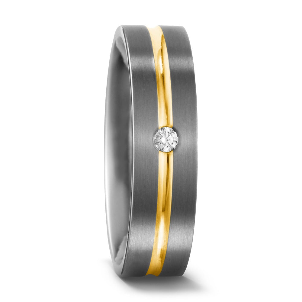 Anillo de pareja Titanio, 750/oro amarillo de 18 quilates Diamante 0.03 ct, w-si