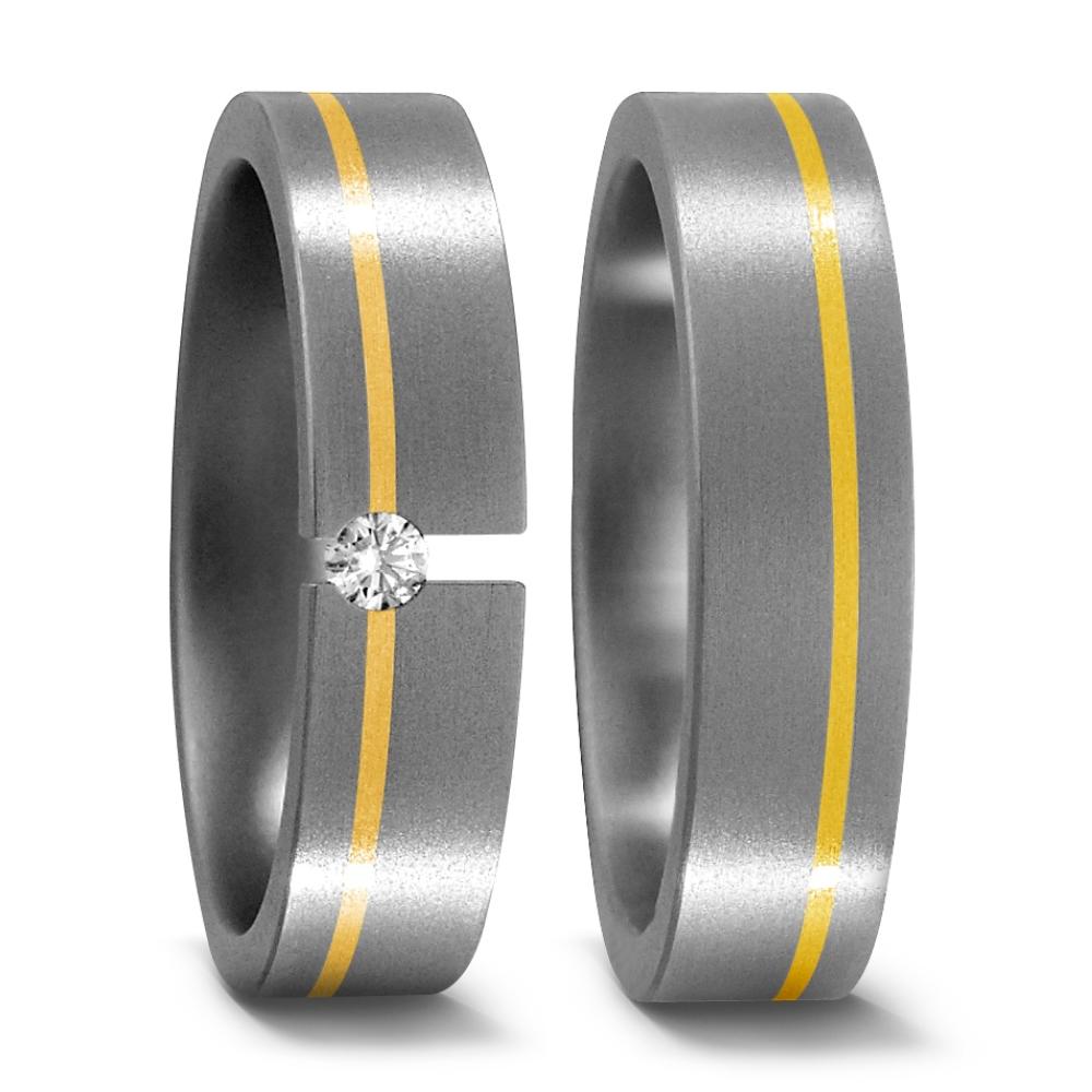 Anillo de pareja Titanio, 750/oro amarillo de 18 quilates Diamante 0.05 ct, w-si
