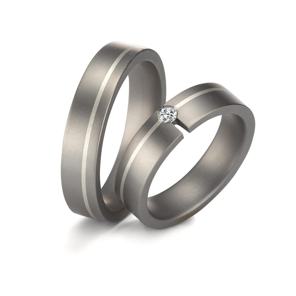 Anillo de titanio con diseño moderno y elegante. Su acabado mate en color gris se combina con una fina línea plateada que lo hace ideal para parejas que buscan un símbolo duradero y sofisticado. Ligero, resistente y perfecto para el uso diario.