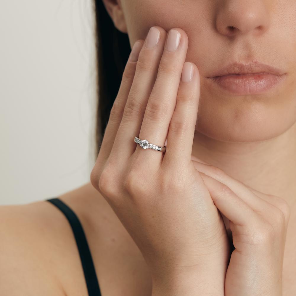 Anillo solitario para mujer en plata, decorado con zirconias brillantes que realzan su elegancia y estilo. Su diseño clásico y sofisticado lo convierte en el complemento perfecto para cualquier ocasión especial. Elegancia y belleza en cada detalle.