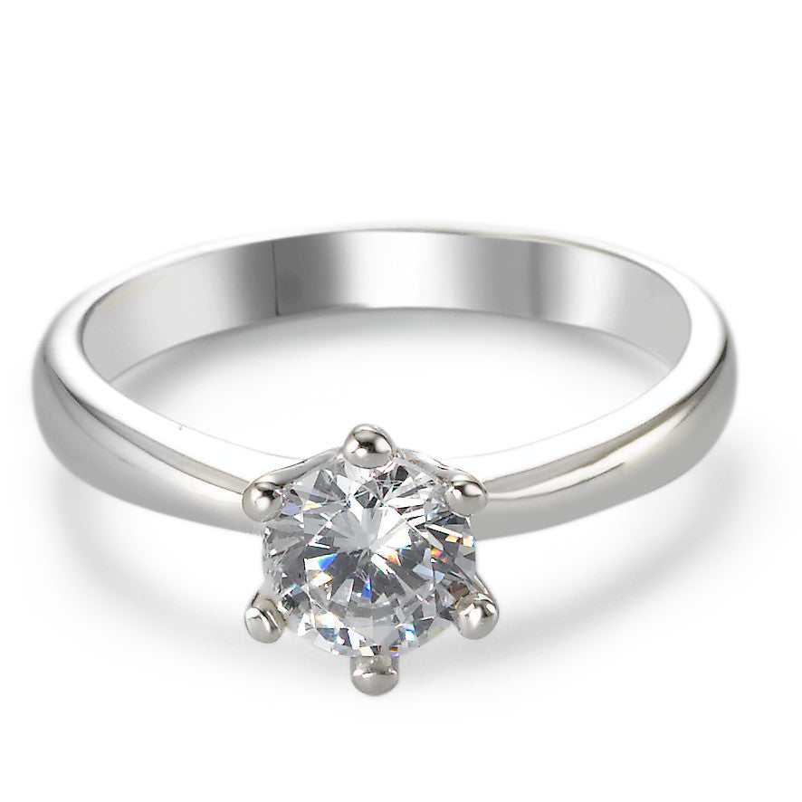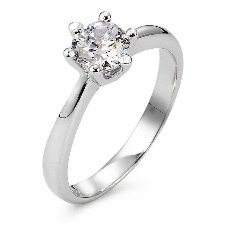 Anillo solitario Plata Circonita 5.5 mm Rodio plateado