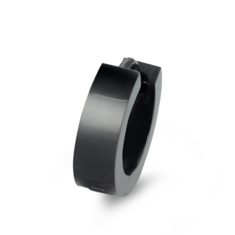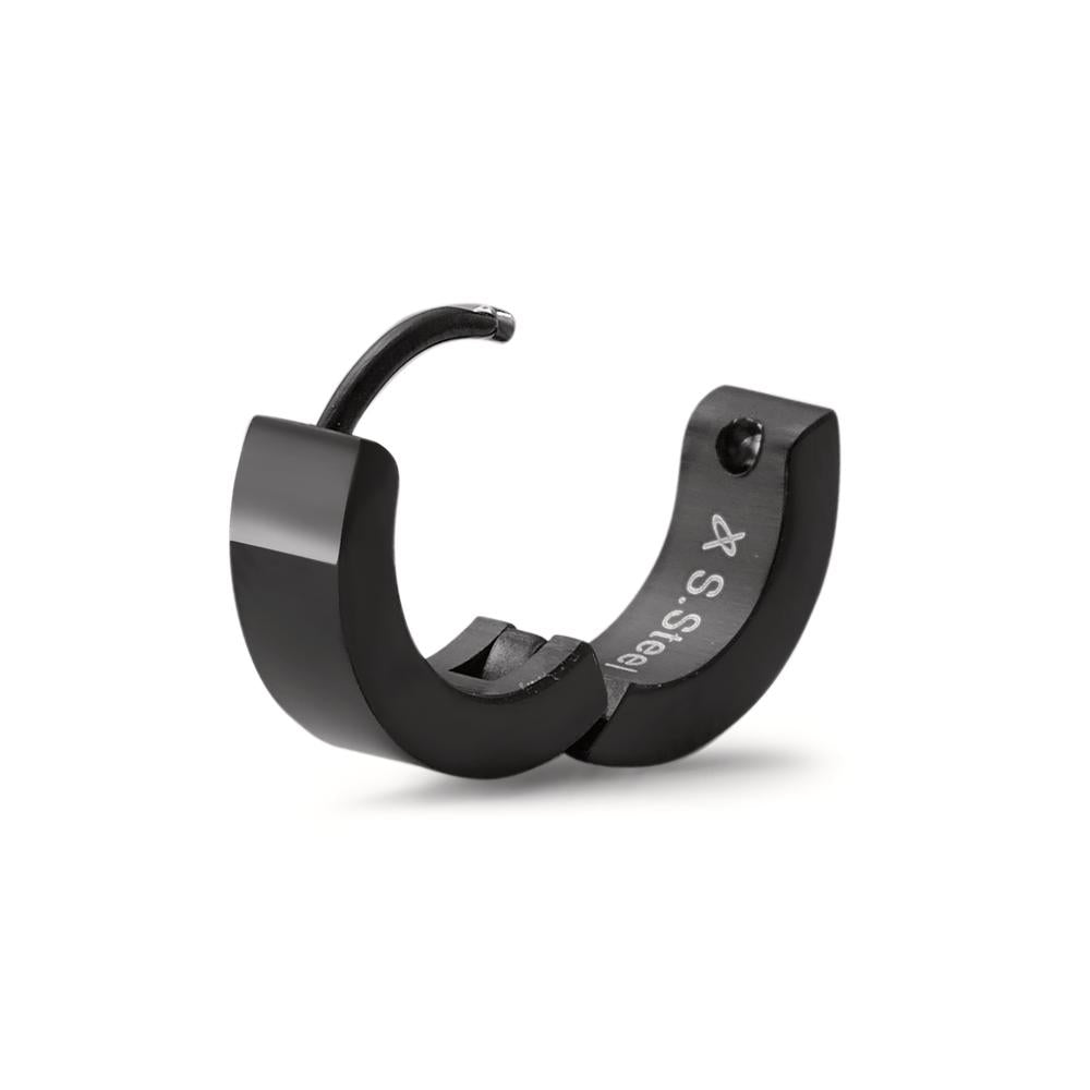 Pendiente de aro abatible para hombre, fabricado en acero inoxidable negro. Diseño moderno y sencillo, ideal para el uso diario. Resistente al desgaste y fácil de colocar gracias a su cierre seguro. Perfecto para complementar cualquier estilo con elegancia y durabilidad.