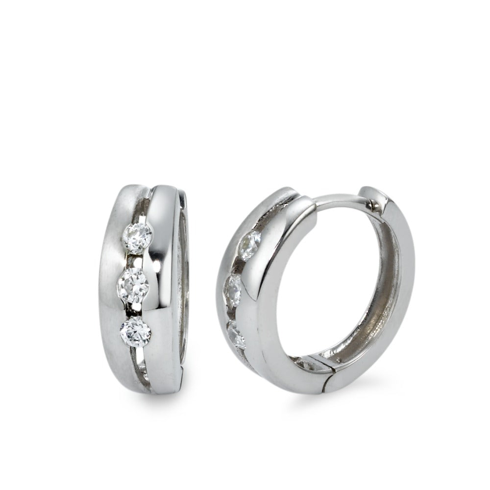 Elegantes Damen Klappcreolen aus 375 Weißgold, verziert mit funkelnden Zirkonia-Steinen. Diese zeitlosen Ohrringe bieten durch ihr sicheres Klappverschluss-Design hohen Tragekomfort und sind das perfekte Accessoire für jeden Anlass. Stilvoll und edel zugleich.