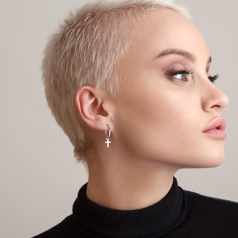 Pendientes de aro estilo Creole en plata, con un delicado colgante en forma de cruz. Un diseño elegante y moderno que combina tradición y estilo, perfecto para cualquier ocasión. Ligero y confortable, será un complemento ideal para tu look diario o eventos especiales.