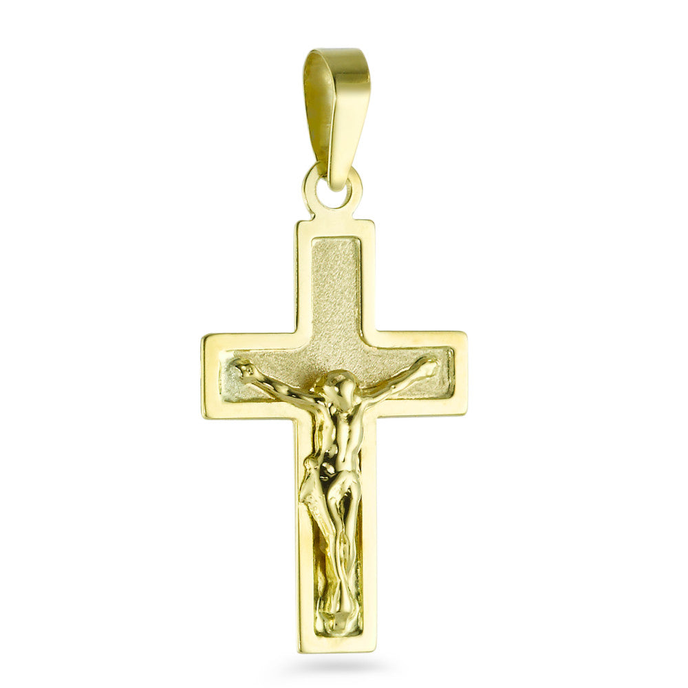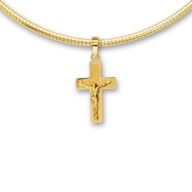 Colgante de cruz en oro amarillo 375. Diseño clásico con figura de Cristo detallada en relieve, ideal para expresar fe y elegancia. Perfecto para regalos especiales o uso diario. Calidad y estilo en una joya atemporal.