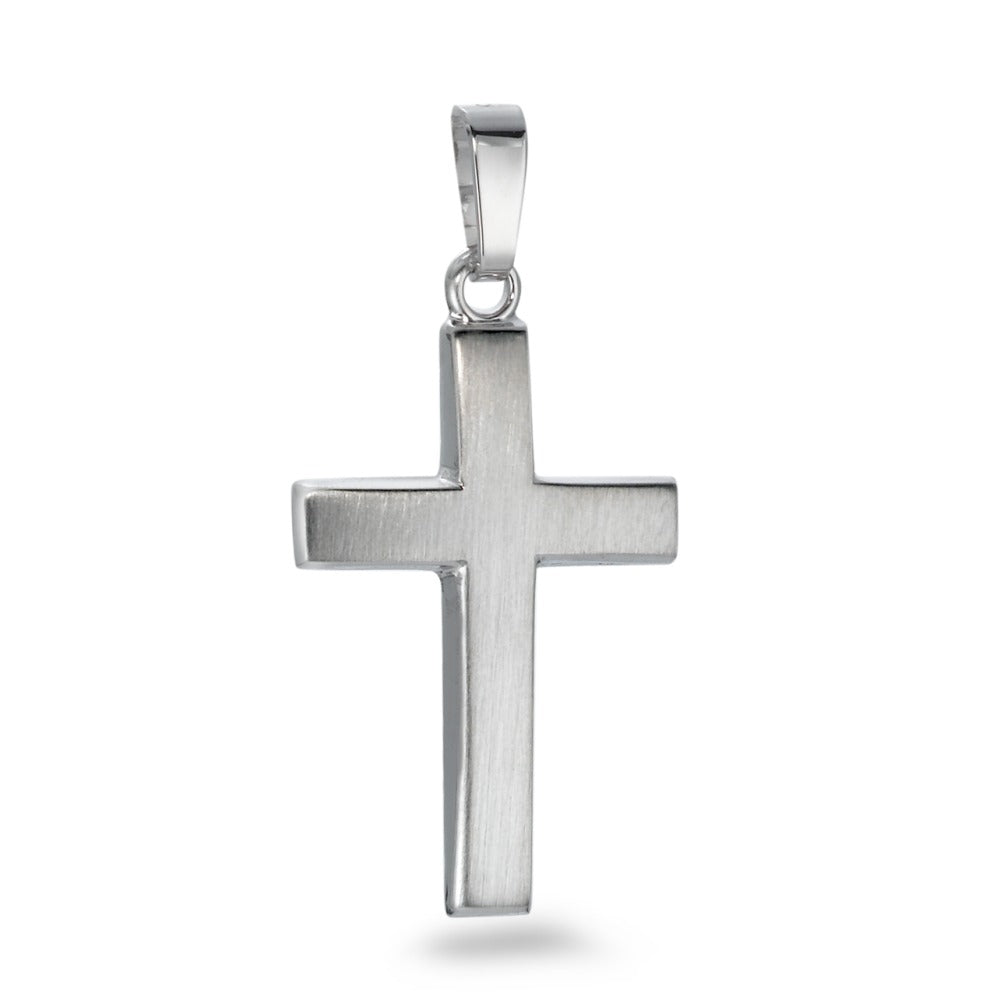 Colgante en forma de cruz fabricado en oro blanco 375. Diseño sencillo y elegante, perfecto para usar diariamente o como símbolo de fe. Su acabado pulido le aporta un toque moderno y sofisticado, ideal para combinar con cualquier estilo. Un accesorio clásico y atemporal.