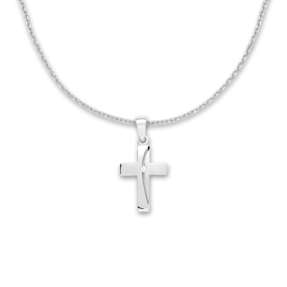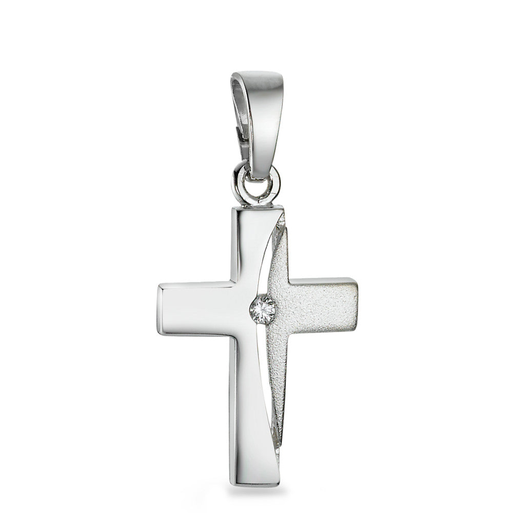 Colgante de cruz en plata de alta calidad, con un elegante diseño combinado de superficies pulidas y texturizadas. Adornado con un brillante circonio en el centro, aporta un toque de sofisticación y estilo a cualquier ocasión. Perfecto para uso diario o como regalo especial.