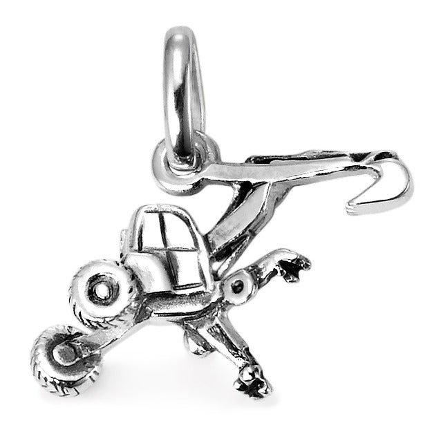 Colgante para hombre en plata con diseño del icónico tractor Menzi Muck. Perfecto para amantes de la maquinaria y trabajos pesados, combina estilo y personalidad en una pieza única y detallada. Un accesorio ideal para el día a día y ocasiones especiales.