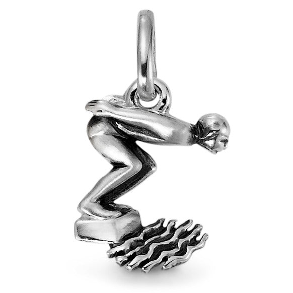 Colgante para hombre en plata, con diseño detallado de un nadador listo para zambullirse. Ideal para amantes de la natación o deportes acuáticos, combina estilo y pasión en un accesorio único y elegante. Perfecto para usar a diario o como regalo especial.