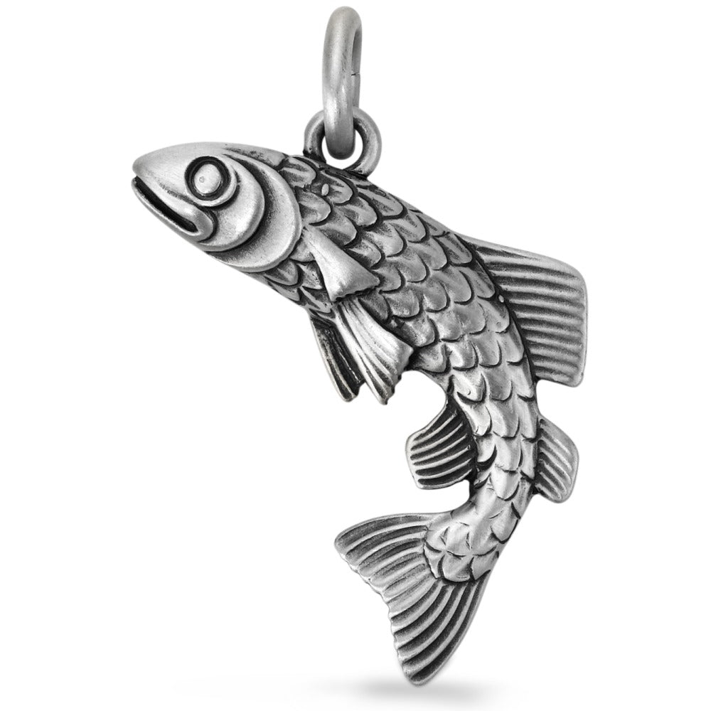 Colgante de plata con diseño de pez detallado, ideal para amantes de la naturaleza y la vida marina. Perfecto para dar un toque original y elegante a cualquier cadena o pulsera. Un accesorio versátil y único que simboliza libertad y prosperidad.