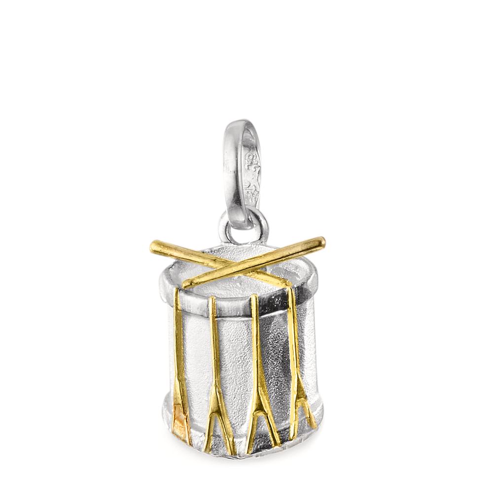 Colgante para hombre en plata, con diseño de tambor. Detalles dorados en los palillos y las cuerdas del tambor, que resaltan su estilo único y moderno. Ideal para amantes de la música o como accesorio distintivo. Perfecto para usar en cualquier ocasión.