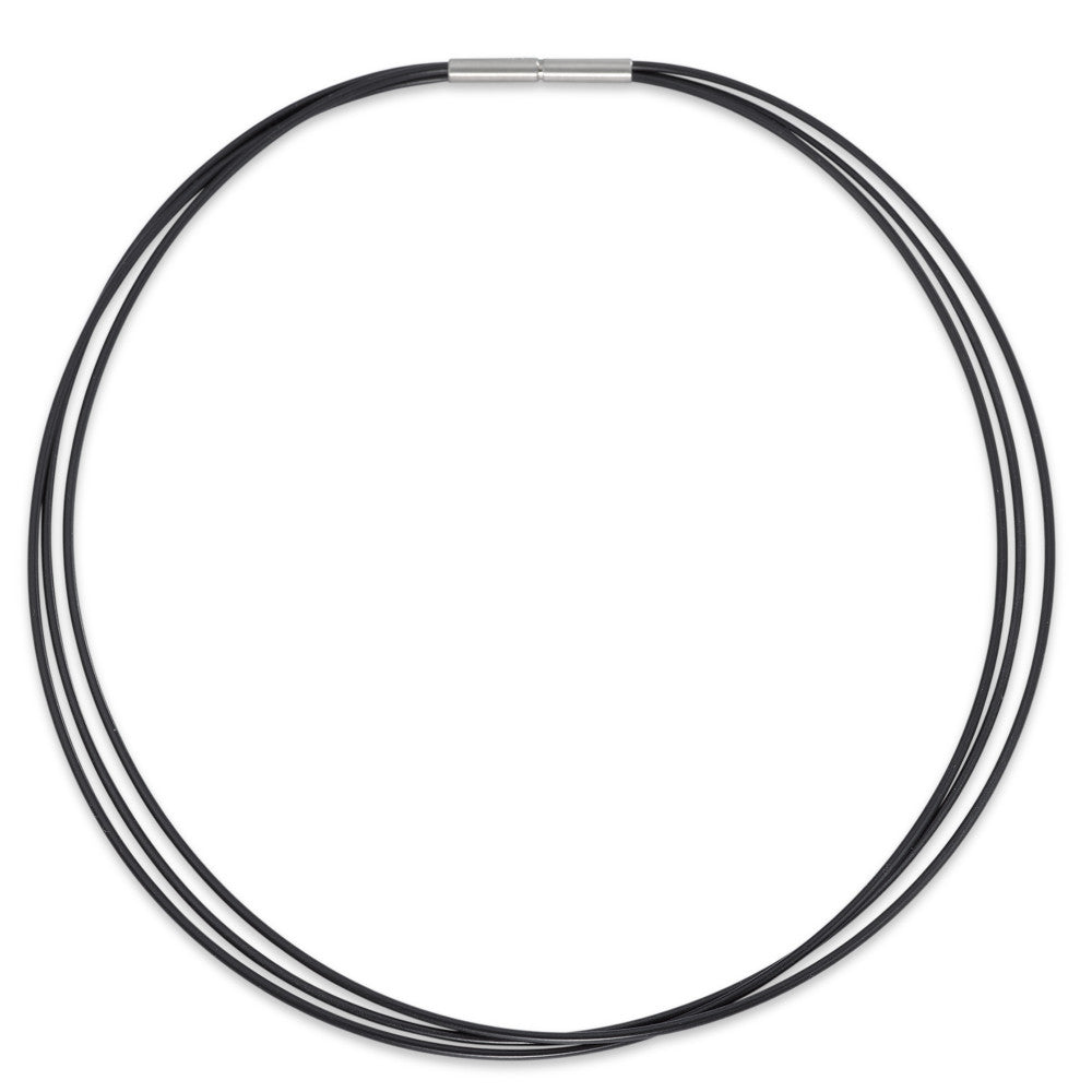 Collar para mujer elegante y moderno, confeccionado con acero inoxidable y caucho negro. Su diseño minimalista de tres hilos aporta un toque sofisticado y versátil. Perfecto para cualquier ocasión, combina comodidad y estilo contemporáneo en una sola pieza.