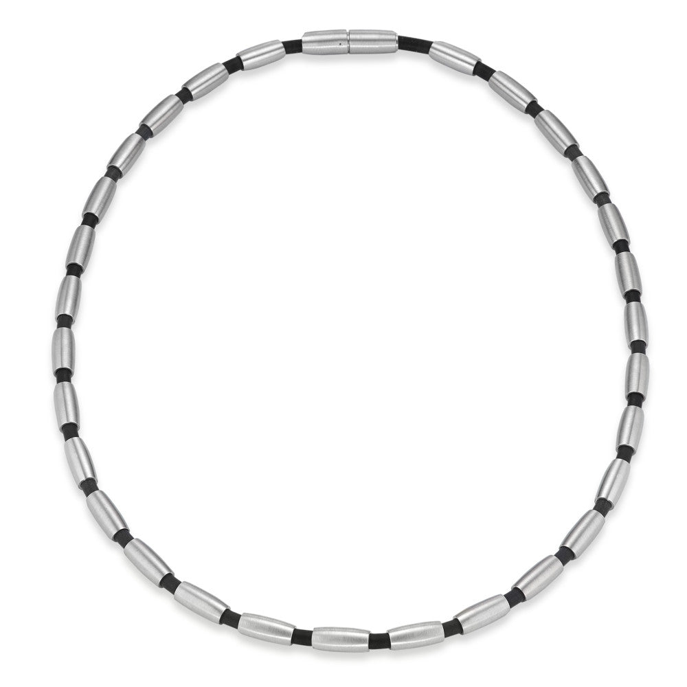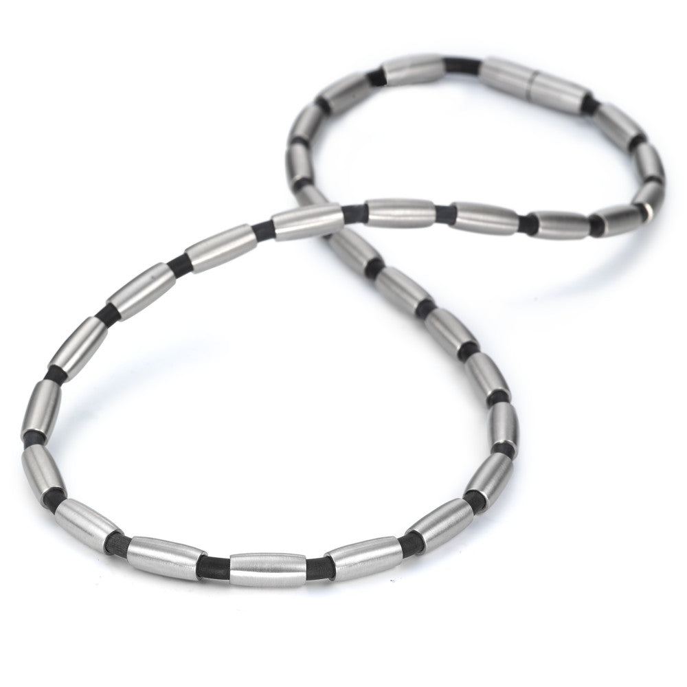 Collar moderno y elegante fabricado en acero inoxidable y caucho negro. Combina resistencia y estilo, ideal para un look contemporáneo. Ligero y cómodo para uso diario, añade un toque sofisticado y masculino a cualquier atuendo. Perfecto para regalar o para ti.