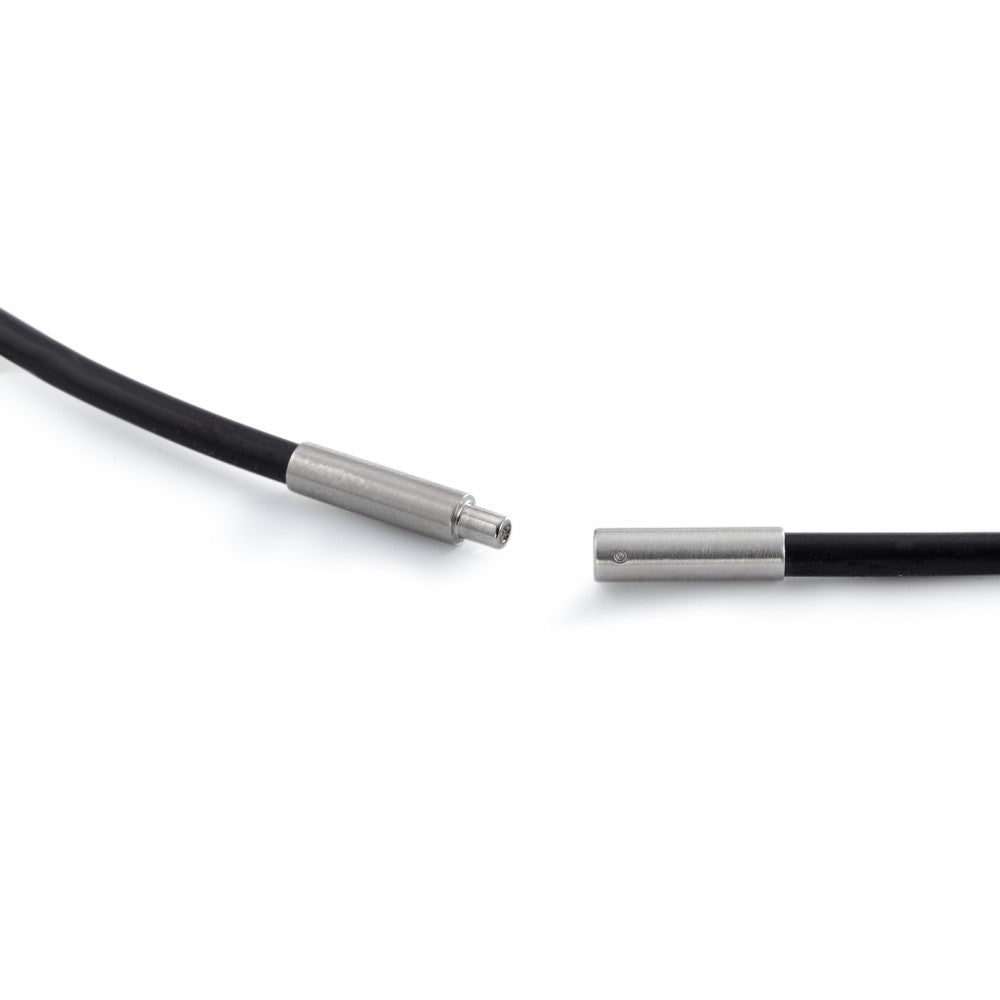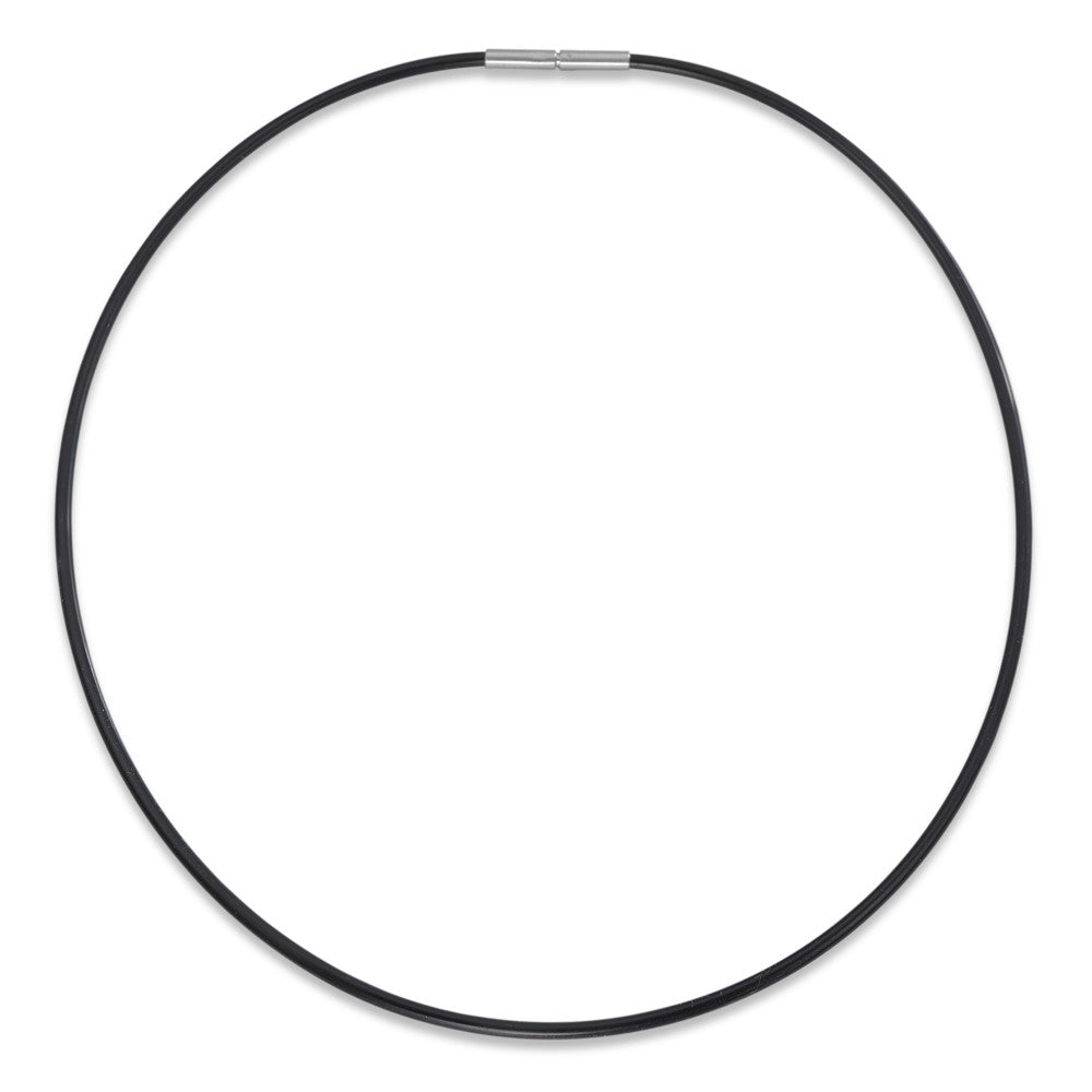 Collar para mujer elaborado en caucho negro con cierre de acero inoxidable. Diseño moderno y sencillo que combina comodidad y durabilidad. Ideal para el uso diario o para complementar cualquier estilo con un toque discreto y elegante. Fácil de combinar con otros accesorios.