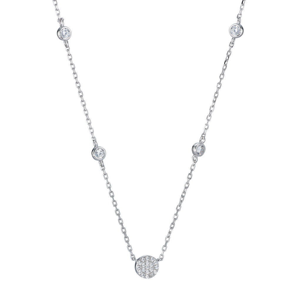 Collar para mujer elaborado en plata de alta calidad, decorado con elegantes circonitas que aportan un brillo sofisticado. Su diseño delicado y moderno lo convierte en el complemento perfecto para cualquier ocasión, realzando tu estilo con un toque de glamour sutil y elegante.