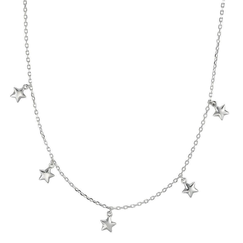 Collar femenino en plata con delicados colgantes en forma de estrella. Diseño elegante y moderno que aporta un toque luminoso y sofisticado a cualquier atuendo. Perfecto para ocasiones especiales o uso diario, destaca por su brillo y detalles finos.