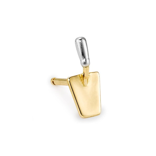 Pendiente para hombre de oro amarillo 18K (750), diseño exclusivo con detalle en plata inspirado en la figura de un maurero. Elegante y moderno, ideal para un estilo sofisticado y único. Se vende por unidad. Perfecto para uso diario o eventos especiales.