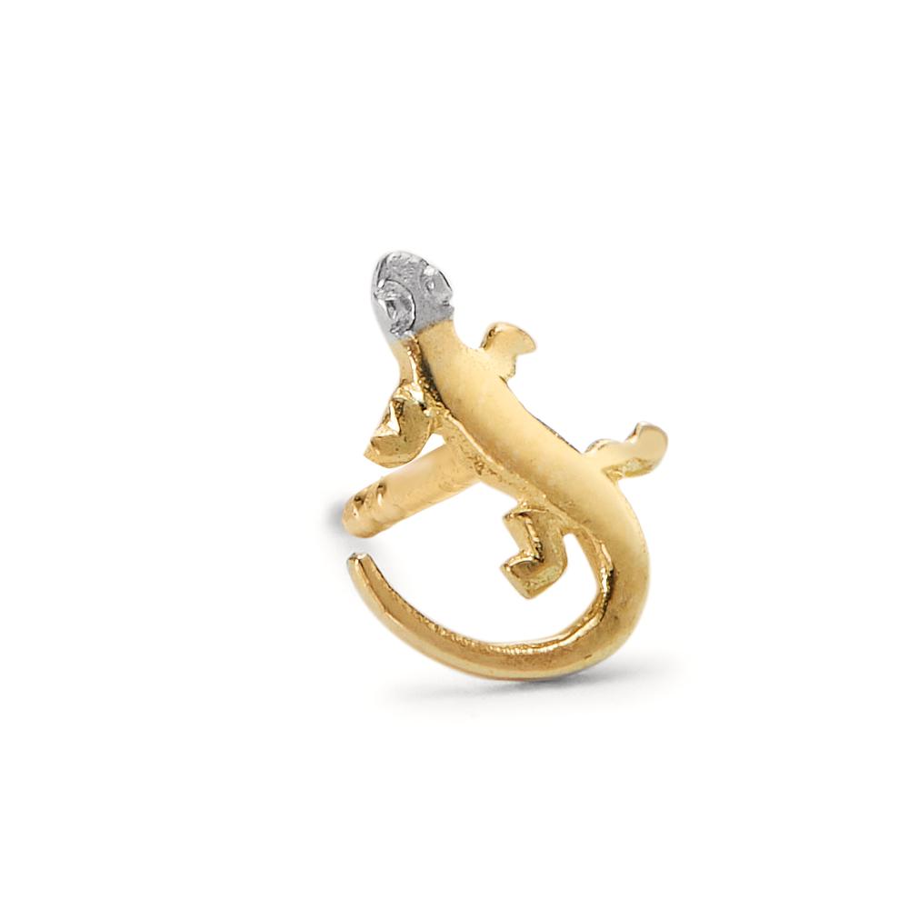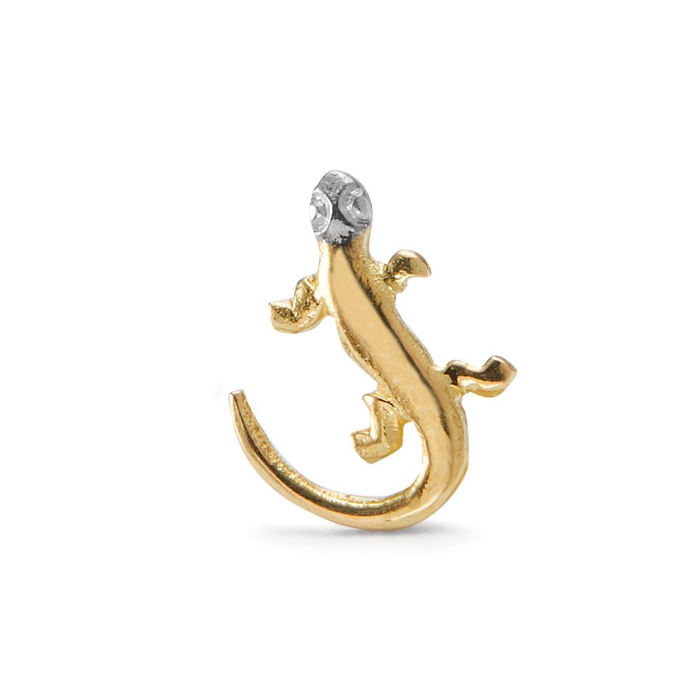 Pendiente para hombre en oro amarillo 750 de alta calidad con diseño de lagartija. Un accesorio elegante y original que combina estilo y personalidad, ideal para el hombre moderno que busca un toque distintivo en su look diario. Solo una pieza incluída.