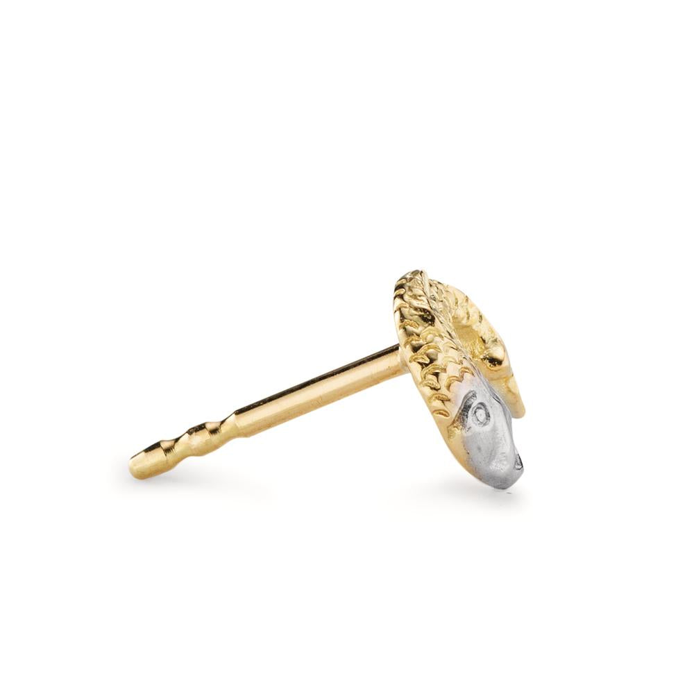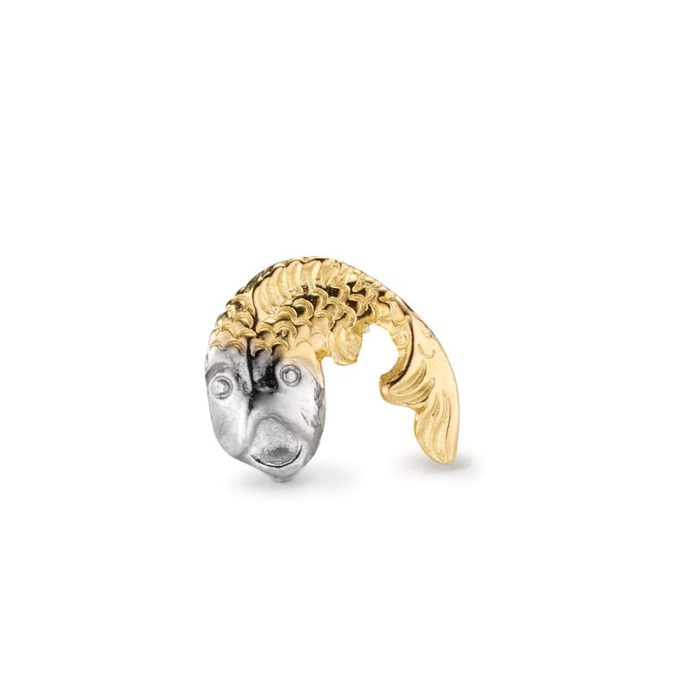 Pendiente para hombre, 1 unidad, elaborado en oro amarillo 18 quilates (750), con diseño único de pez que combina texturas doradas y plateadas. Una pieza elegante y distintiva que resalta estilo y personalidad. Perfecto para un look moderno y sofisticado.