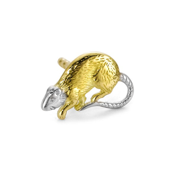 Pendiente para hombre, pieza única, diseñado en oro amarillo 750, con forma detallada de rata. Un accesorio exclusivo que combina estilo y originalidad, perfecto para quienes buscan un toque distintivo y elegante en su look diario.