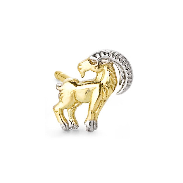 Pendiente para hombre en oro amarillo 750, con diseño del signo zodiacal Capricornio. Un accesorio elegante y único que refleja la personalidad fuerte y decidida de Capricornio. Perfecto para uso diario o como regalo especial. Calidad y estilo en un solo pendiente.