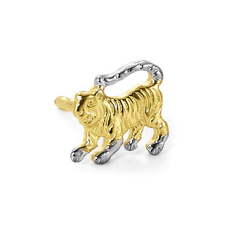 Pendiente para hombre de 1 unidad, elaborado en oro amarillo 18 quilates (750). Este diseño exclusivo presenta la figura detallada de un tigre, combinando elegancia y fuerza en una pieza única. Perfecto para destacar tu estilo con carácter y sofisticación.