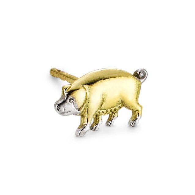 Pendiente para hombre en oro amarillo 375, con diseño de cerdito. Un accesorio único que combina elegancia y personalidad, perfecto para destacar con un toque divertido y sofisticado. Alta calidad y durabilidad en una pieza original y distintiva.